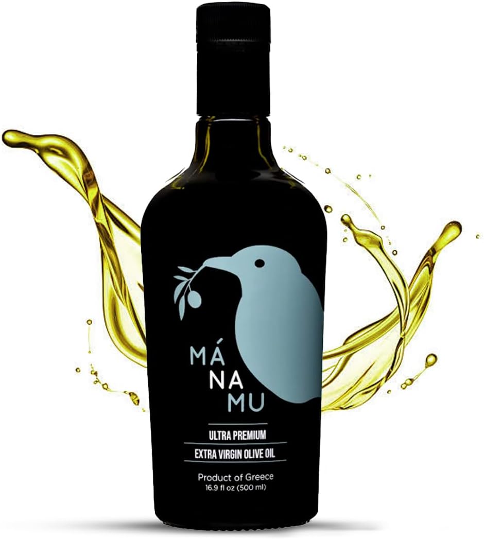 500 ML de Aceite de oliva extra virgen, ultra premium Griego de la marca Mánamu, es 100% PURO. NO diluido, mezclado, ni rebajado con otras variedades de aceituna o tipos de aceites. Extraído directamente de las famosas MONOVARIETAL Aceitunas Koroneiki en huertos centenarios en Messinias, Grecia.