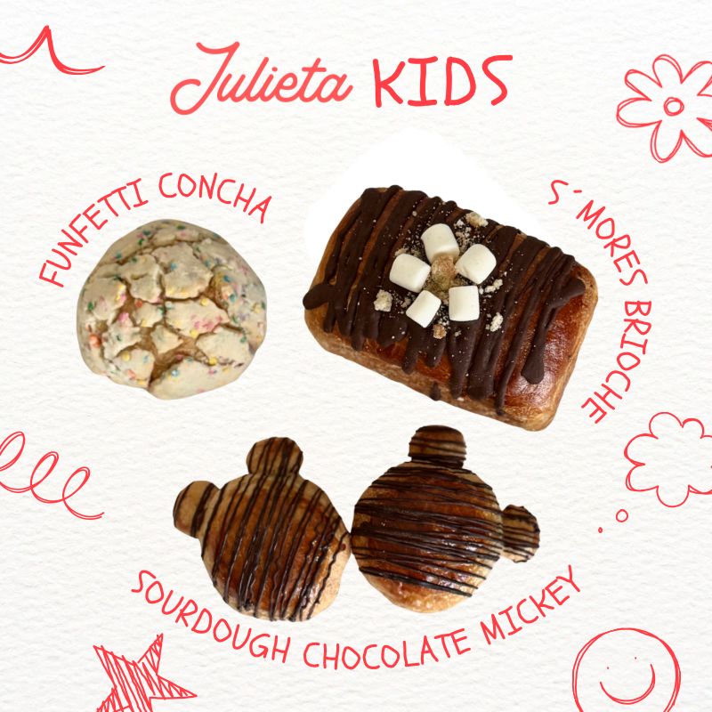 Celebra el Día del Niño con nuestra Caja Julieta Kids, una selección especial de pan dulce de masa madre creada para llenar de alegría y sabor este día tan especial. Una caja mixta con nuestros favoritos, pensada para compartir, regalar y sorprender a los más pequeños.