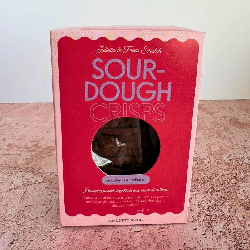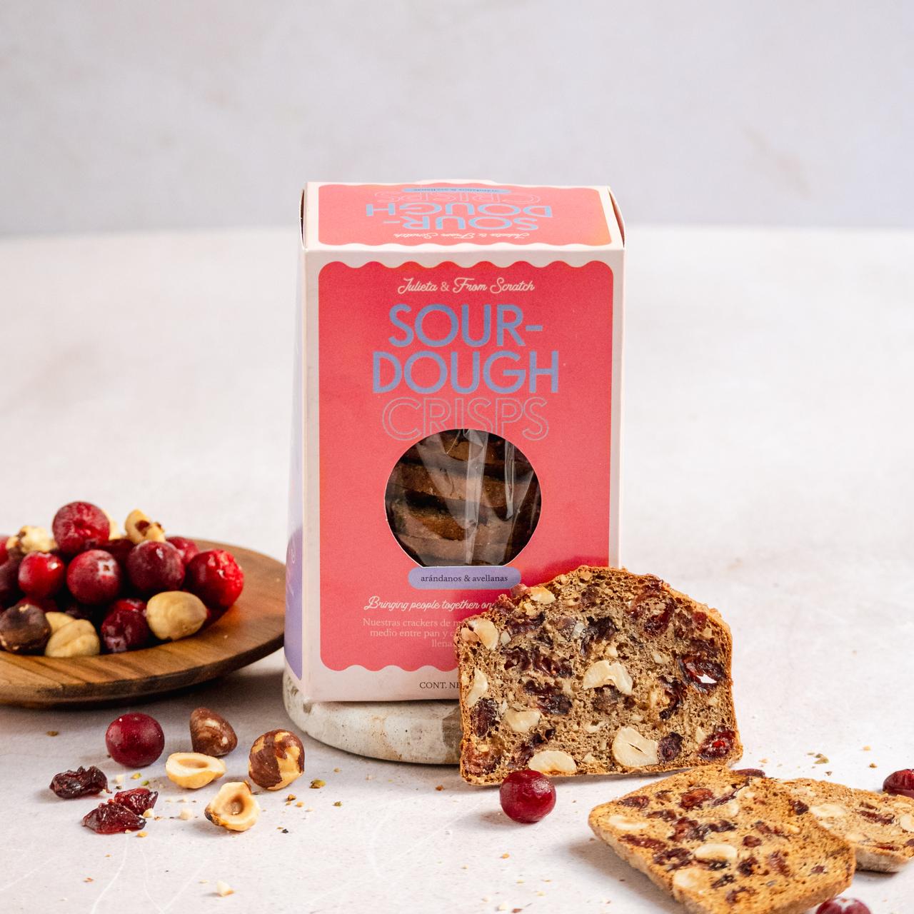 Crackers de masa madre sabor avllena y arándano horneadas lentamente para lograr una textura ligera, crujiente y dorada. El dulzor natural del arándano se equilibra con las avellanas tostadas, creando un sabor elegante y versátil. Perfectas para acompañar quesos, dips o elevar cualquier tabla de botanas.