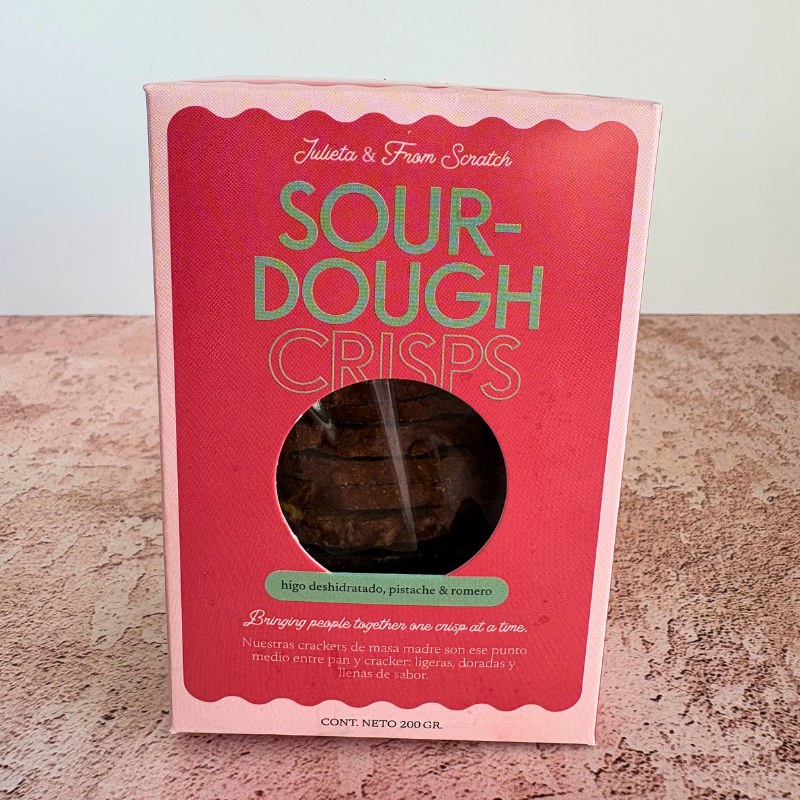 Crackers de masa madre sabor higo, pistache y romero, horneadas lentamente para lograr una textura ligera, crujiente y dorada. El dulzor natural del higo se equilibra con el pistache y el toque aromático del romero, creando un sabor elegante y versátil. Perfectas para acompañar quesos, dips o elevar cualquier tabla de botanas.